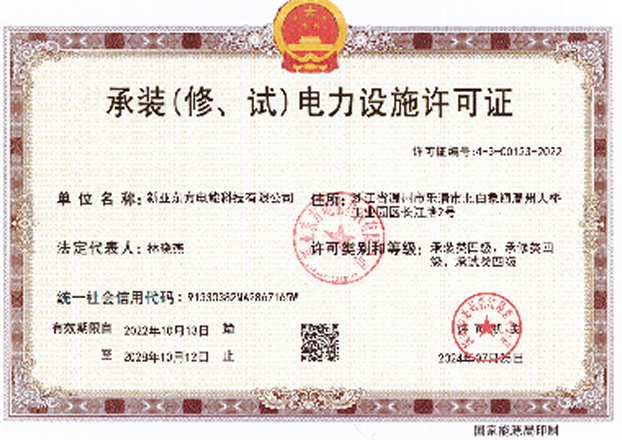 新亚东方是全国无区域国家高新技术企业、国家级科技型中小企业、浙江省专精特新中小企业、浙江省创新型中小企业、温州市企业技术研究开发中心、充电桩企业技术研究开发中心。公司通过IS09001、IS014001、1S045001等体系认证,具备电力工程施工总承包贰级资质,承装(修、试)电力设施三级资质,拥有众多专利和软件著作权,产品通过开普实验室、中检南方、TUV莱茵、TUV南德等国内外知名第三方权威认证机构的CQC、TUV、CB、CE认证。